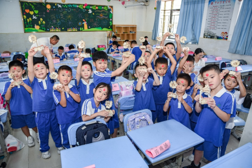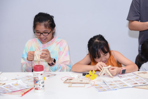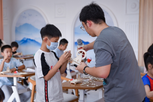 ▲在老师的指导下组装“手摇发电机”