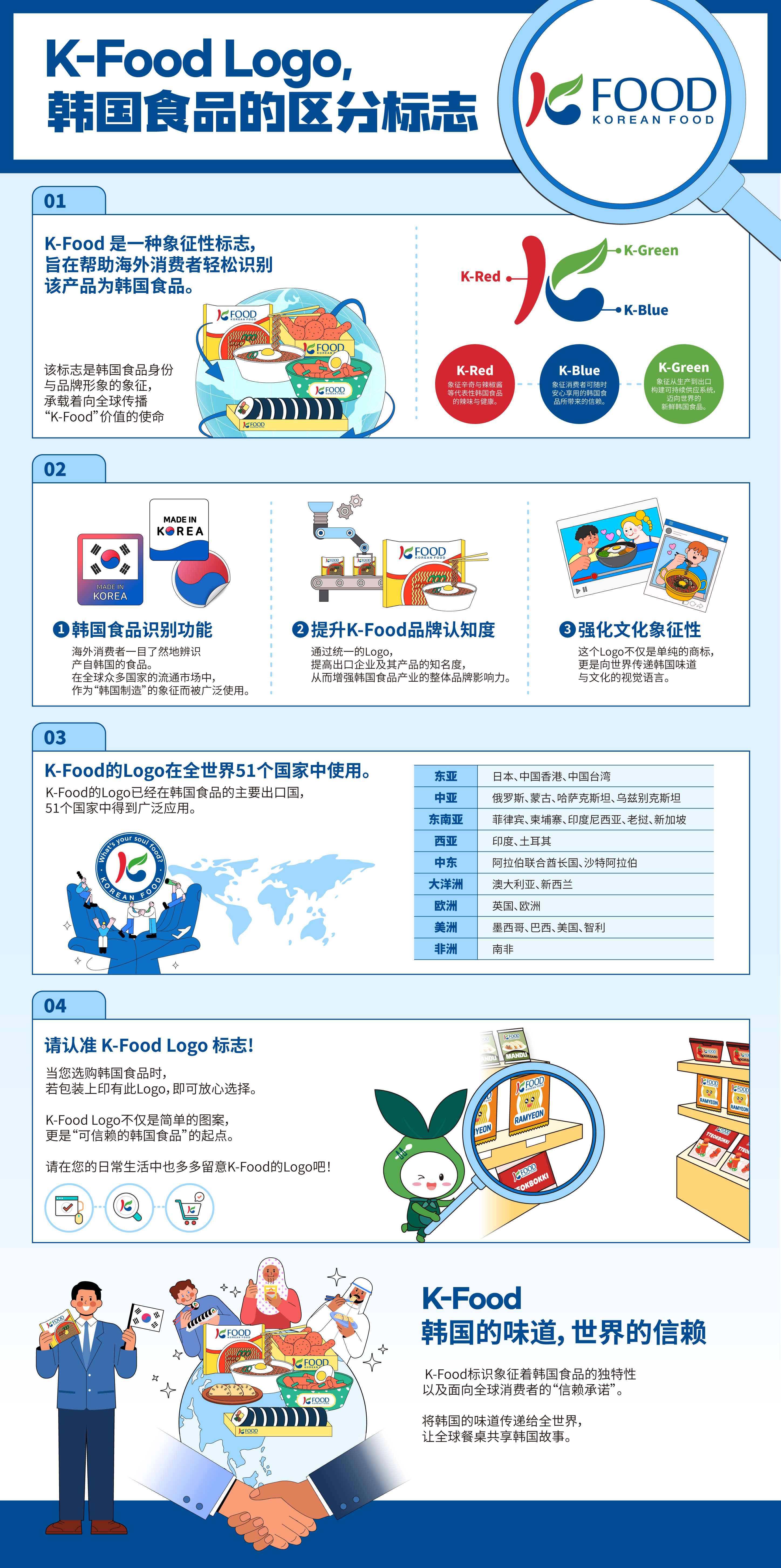 同步发布的K-Food标识知识的卡片新闻与信息图,通过aT大连代表处的微信平台进行精准投放,获得用户积极反馈 线上互动活动"找出官方认证的“K-Food”标识!也引发了高度参与。参与者通过在图片中找出“官方K-Food标识”留言参与活动,即有机会获赠K-Food主题零食礼包,获得了良好反响。 本次活动推动K-Food标识实现了从基础商标到品质认证符号的价值跃升,成功将其塑造为消费者识别韩国食品的重要依据与信任背书。 aT大连代表处支社长李政锡表示:“此次活动为向中国消费者轻松、有趣地传达K-Food标识含义提供了良好契机。”他同时强调,“未来将持续强化与大学、地区消费者及新媒体平台的合作,致力于使K-Food标识成为甄别韩国产食品的信任标准。” |