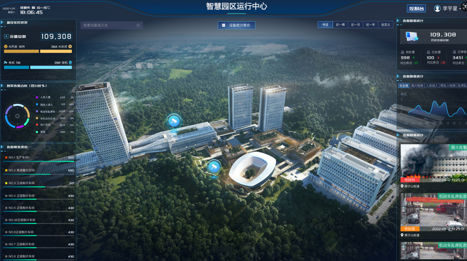 在数字经济与产业升级的双重驱动下,AI + 园区已成为产业空间智能化升级的核心方向。国家及地方层面密集出台政策支持 AI 与园区场景的深度融合,然而,当前多数园区在迈向 AI + 模式的过程中陷入瓶颈,传统运营模式的短板与技术应用的表层化,让转型难以落地,三大核心痛点亟待破解: 信息不对称与数据割裂:传统园区业务系统分散,安防、设施、人车数据形成 “信息孤岛”,管理者难以整合分析全域态势,决策依赖经验、响应滞后,无法匹配 AI + 园区对数据协同的核心需求; 安全风险难控且成本高:人工巡检与单点监控存在盲区,消防隐患、违规作业等风险难以及时发现,人工审核告警工作量大、误报率高,监管陷入被动,与 AI + 园区的高效管控目标相悖; AI 应用流于表层化:部分园区的 “AI+” 仅停留在 “园区 + AI 插件” 的浅层模式,技术未深度融入运营全流程,集成性、联动性不足,未能真正发挥AI对园区的赋能价值。 当前,深圳明确提出建设 “低成本、高品质、符合现代企业需求的优质产业空间”,推动园区向集成化、自动化、智能化转型。作为深圳优质产业空间建设的重点项目,深圳宝龙专精特新产业园积极响应政策导向,致力于通过智慧化升级提升园区核心竞争力,但在推进转型过程中,其面临的行业共性痛点也尤为突出,成为制约其实现互联互通、技术融合与场景落地的关键瓶颈。