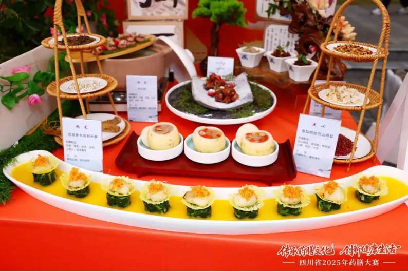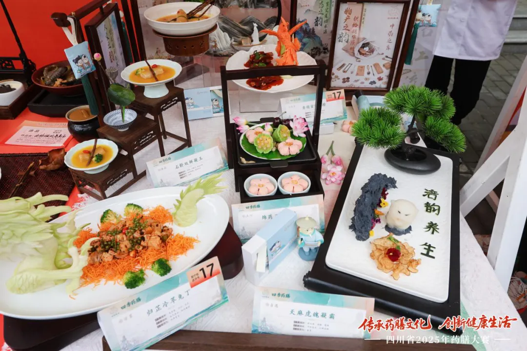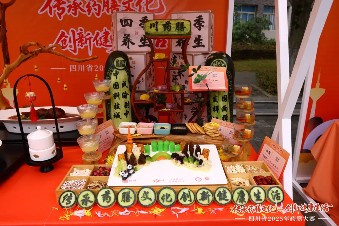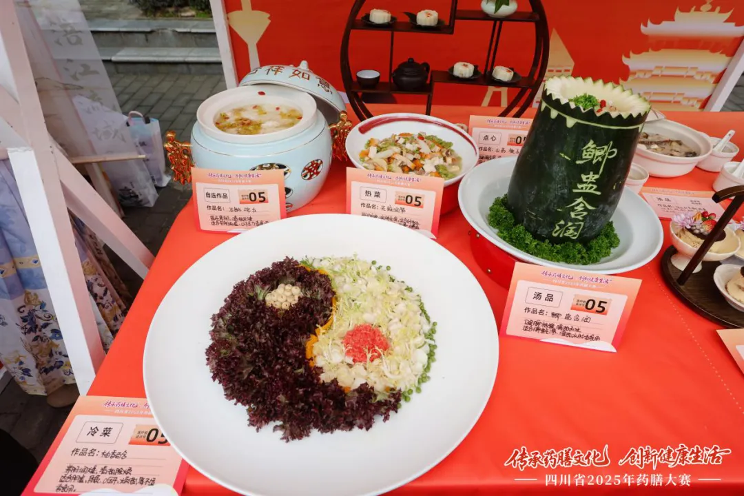 四川中药材资源丰富,素有“中医之乡、中药之库”的美誉。药膳作为中医药文化的鲜活载体,是健康养生理念与饮食文化的完美融合。本次大赛旨在贯彻落实省委、省政府重要部署,促进“中医药+文旅”深度融合,立足四川道地药材资源,布局药食同源新赛道,推进中医药全面融入经济社会发展大局;擦亮川药膳特色品牌,发挥药膳在养生、保健、疗疾中的独特优势,研发系列独具四川特色的药膳精品;创新搭建政企协同、行业交流的桥梁,发掘一批药膳骨干人才,为川药膳标准化、产业化发展注入强劲动能。 药膳大赛启动以来,全省21个市(州)82支队伍经过层层筛选和初赛角逐,49支队伍晋级决赛。决赛特邀烹饪大师、知名中医药专家等组成专业裁判组,以菜品的药材配伍合理性、功能针对性和营养科学性等为评价标准,评选出一等奖4名、二等奖6名、三等奖10名,优秀作品奖10个,及优秀团体奖、最佳组织奖若干。