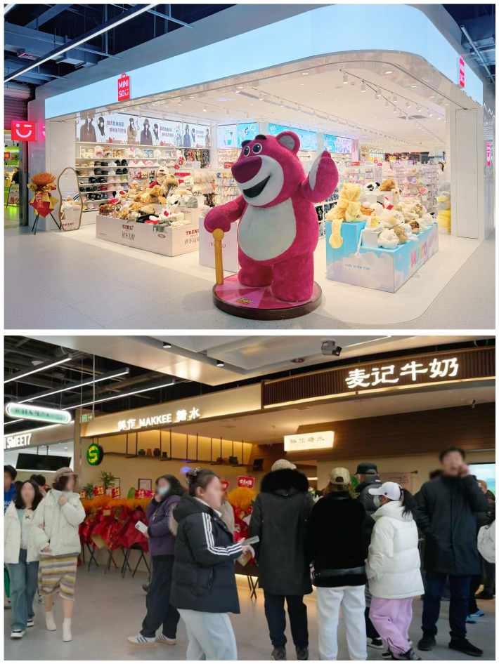 首店矩阵:26%首店占比重塑区域品牌格局 围绕“年轻、潮流、社交”的定位,中原瞰海在招商策略上精准发力,成功引入天津首店8家、滨海首店10家,首店占比高达26%,形成差异化竞争力。名创优品滨海旗舰店、石叶书咖天津首店、麦记牛奶滨海首店等特色品牌集体亮相,覆盖文创、餐饮、潮玩等多维度消费需求,以“首店经济”激活商圈品牌活力。