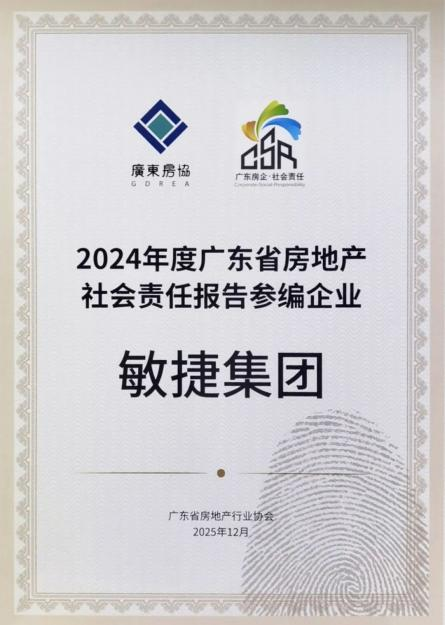 在企业发展与社会价值共生的时代命题下,优秀房企正以实际行动书写责任答卷。近日,广东省房地产行业协会发布《2024年度广东省房地产企业社会责任报告》,敏捷集团凭借在乡村振兴、公益慈善、城市建设等领域的扎...