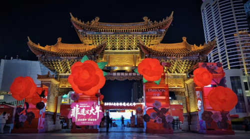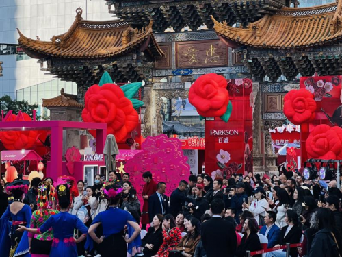 2026年1月30日,昆明百盛25周年庆“百花盛开·与城市共生长”主题活动盛大启幕。昆明百盛以云南省花、昆明市花“山茶花”为元素、以非遗彝绣为灵感、以昆明地标“忠爱坊”为载体,创作“百花盛开”艺术装置。这一艺术装置不仅仅是昆明百盛在春城扎根二十五载后献给城市的马年贺礼,更是百盛与昆明共同生长二十五年的繁华见证。活动现场邀请广大市民、百盛合作伙伴、会员代表同赏非遗华服秀,共走百花盛开路,呈现了一场传统与现代交融、企业与城市共鸣的盛况。