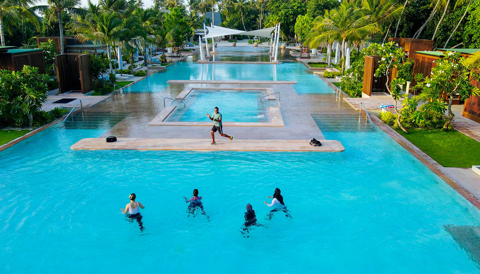 在设施与体验方面,酒店集休闲、运动和疗愈于一体。酒店拥有马尔代夫最大的150米泳池,并设有八间餐厅、三间酒吧及威士忌与雪茄酒廊,提供多元餐饮选择;独立岛屿水疗中心融合南亚传统疗愈理念与音疗体验。同时,酒店配备完善的健身设施、多种运动场地、水上活动及 Kuda Fiyo 儿童俱乐部,为不同年龄层宾客提供丰富的休闲互动体验,满足情侣、家庭及多元客群的度假需求。
