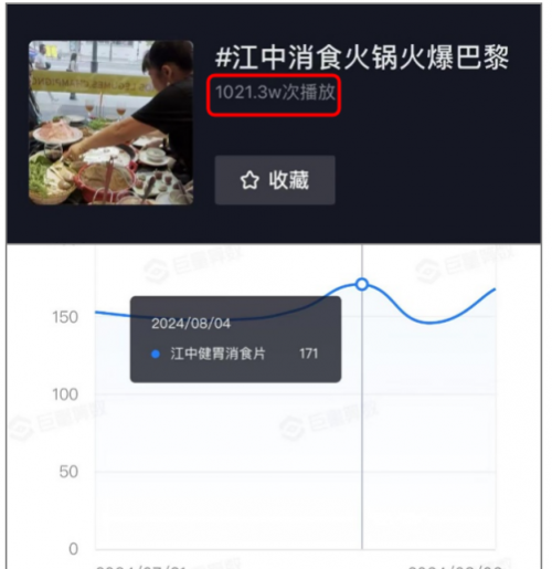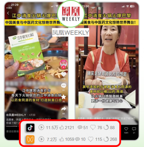 据统计,本次传播事件的海外曝光量超2549.1万次,国内达人累计播放阅读量达1153.2万以上,互动量超49.3万;话题#江中消食火锅火爆巴黎#在抖音播放量超1021.3万,品牌词“江中健胃消食片”搜索指数同比上涨68.73%,平台综合指数同比上涨55.24%,成功触达时尚、美食、文化教育等领域目标人群,同时吸引大量年轻群体关注,契合品牌年轻化需求。