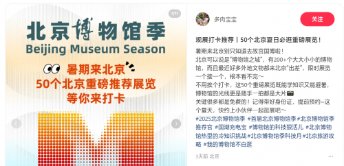 北京博物馆季6月传播并非孤立节点,而是承上启下的关键一环。在总结5月展览月声量的同时,预热7月文创月、8月研学月等活动,通过《暑期来北京——50个展览推荐》等长线内容,持续吸引游客与市民关注,将“博物馆季”延伸为跨越数月、辐射全城的持续性文化事件。这种“当月引爆+长线引流”的节奏设计,不仅放大了单月活动的声势,更逐步建立起“北京博物馆季”作为城市文化标志的品牌认知。